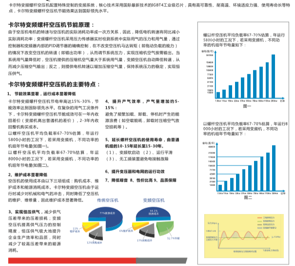 變頻空壓機(jī)和風(fēng)機(jī)電機(jī)水泵節(jié)電一樣,根據(jù)負(fù)載變化,控制輸入的電壓頻率,其能保持壓力、流量、溫度等參數(shù)的穩(wěn)定,從而大大提高壓縮機(jī)的工作性能。